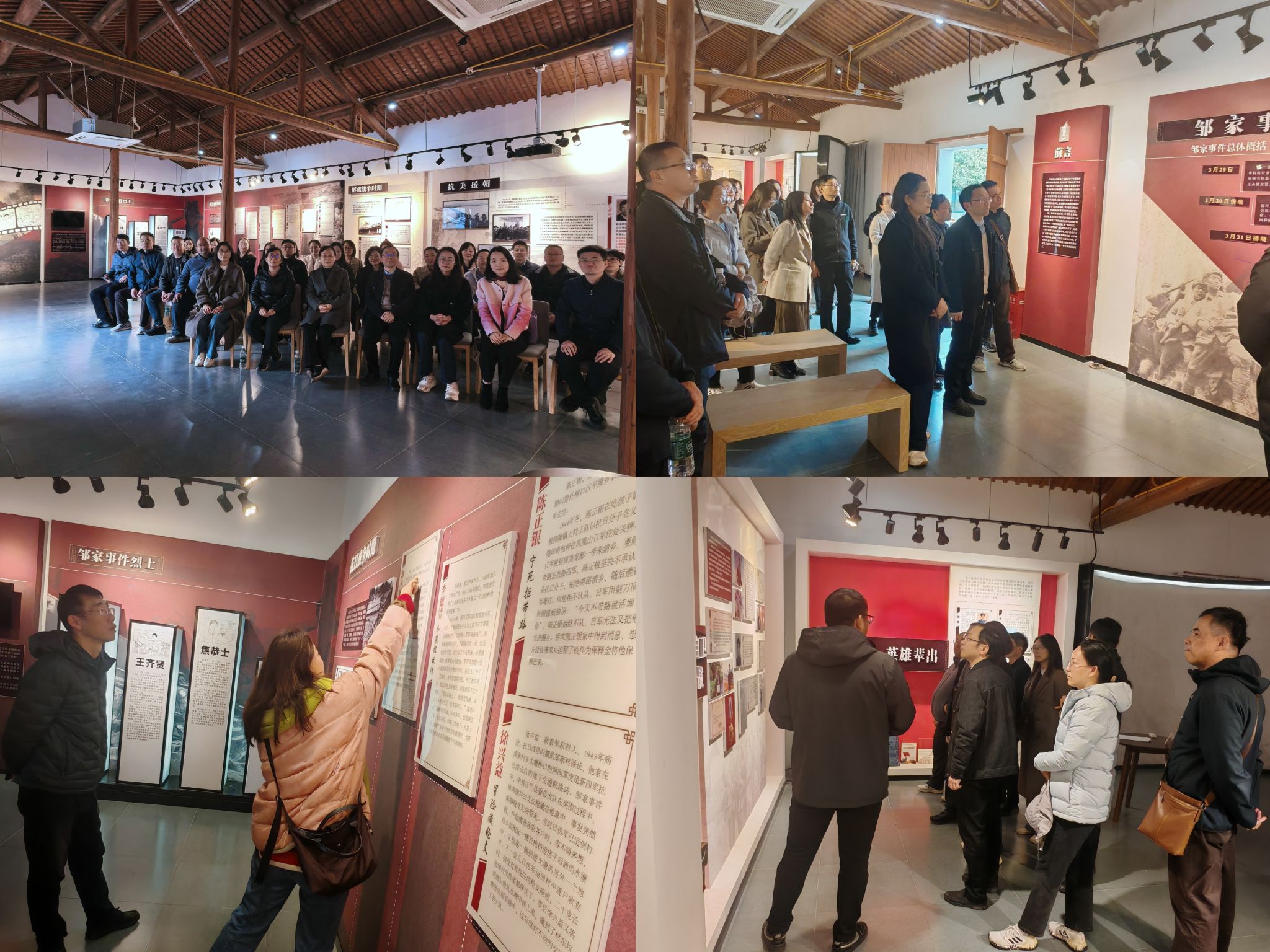 2025年12月10日下午,网通学院党委组织全体教师党员前往江宁区湖熟街道新农社区邹家红色展厅,开展“追寻红色足迹,传承革命精神,砥砺奋进初心”主题党日活动。通过参观展馆、聆听党课,全体党员在历史与现实的联结中接受精神洗礼,汲取前进力量。