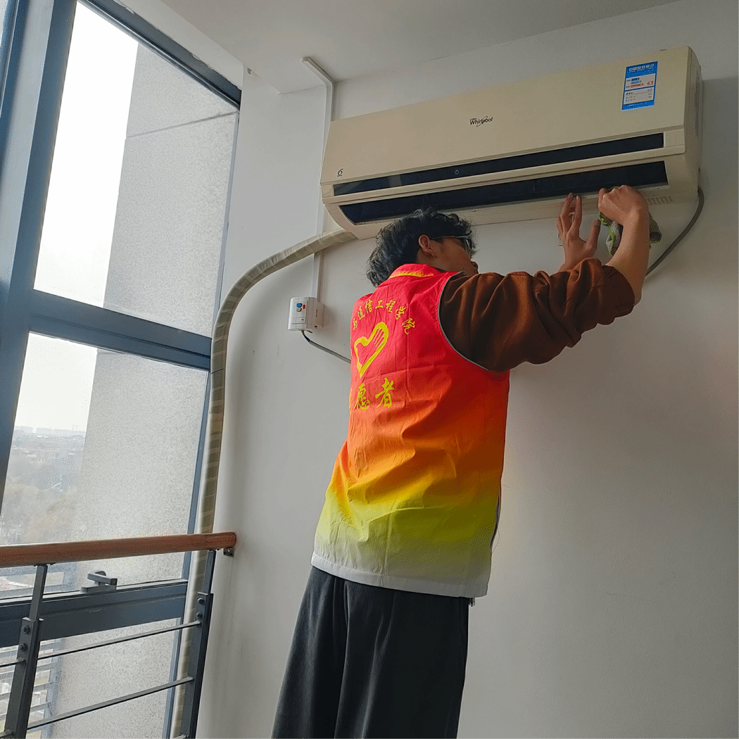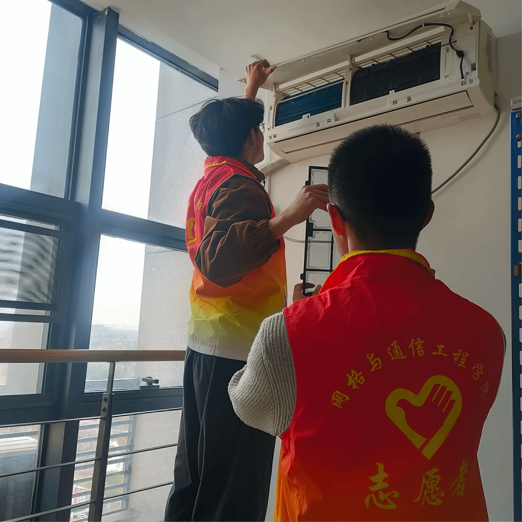 活动中,多名志愿者走进办公室、会议室,他们秉承不畏脏、不怕苦的“螺丝钉”精神,拆下过滤网,有条不紊清理空调的每一处。大家分工明确,配合默契。空调位于高处,长时间抬起手臂擦拭让他们身心俱疲,然而,这都没有影响他们的热情和效率。志愿者们用实际行动诠释奉献,于劳动中感悟雷锋精神,体会成长,磨砺青春。