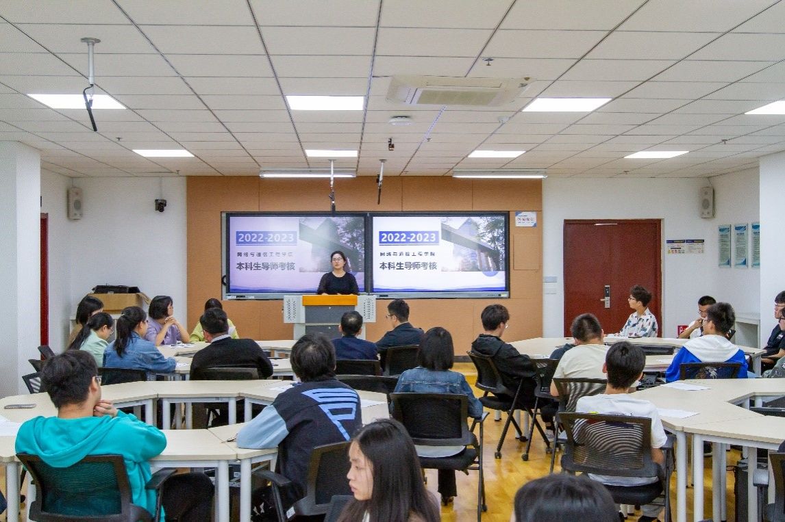 为加强本科生导师队伍的建设与管理,发挥教师教书育人作用,更好地迎接本科教育教学审核评估,太阳集团tyc539macau于5月24日召开2022-2023学年本科生导师考核工作会。7位本科生导师,网通学院党委副书记董宇、副院长王池社教授、辅导员以及各班的学生代表组成的考核工作小组成员参加会议,会议由学工办主任郑灵敏老师主持。