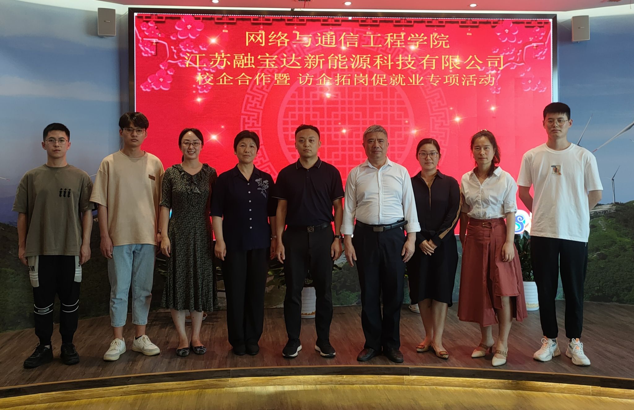 北京融保达新能源科技有限公司是一家以新能源产业为基础,依托新能源产业链开拓多种经营的综合性企业,涉及风电和光伏项目建设及经营、储能、风电后服等。公司总经理韩彤以及江苏分公司总经理林龙均为网通学院通信工程专业2011届校友。网通学院一行首先在林龙总经理的带领下参观了公司,参观后,校企双方进行了深入地交流座谈。陈健书记表明此次访企拓岗的目的,希望利用校友资源,全面加强校企合作。田锦院长介绍了学院的专业特色与优势、师资队伍、人才培养、科研能力等情况,并希望校友们能够经常回母校交流,利用校友平台加强校企合作与联系。林龙经理介绍了公司的产品、企业发展计划等,同时他希望能够为学弟学妹拓展新的就业空间,提供更多岗位资源。