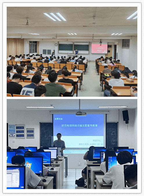 其次,网通学院班主任利用假期来临的时间节点对26个班级分别召开了主题班会,各班主任首先带领学生深入学习《中华人民共和国反电信网络诈骗法》,通过梳理诈骗类型及相关真实案例剖析来提高学生防骗意识及能力。同时,各班主任根据学校要求对学生下载安装使用反诈中心APP情况进行了现场检查。会后,各班主任开展反诈“一对一”谈话,全院学生填写《太阳集团tyc539防范电信网络诈骗告知书》,力求做到“全方位、无死角”的防范电信网络诈骗宣传教育。