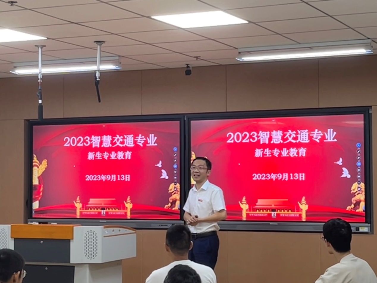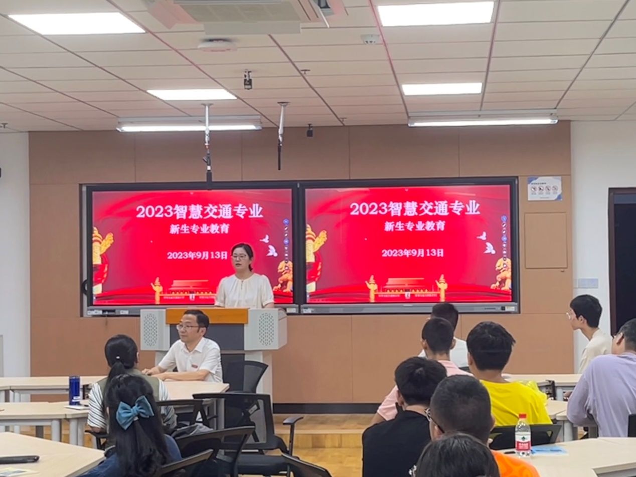 金色九月,梦想启航。9月13日上午,为帮助2023级智慧交通专业新生正确认知并充分了解所学专业、激发学习兴趣、形成正确的专业思想,智慧交通系组织召开了智慧交通专业新生专业教育活动。副院长王池社教授、院党委副书记董宇、智慧交通系全体专任教师、辅导员袁彩霞、2023级智慧交通专业全体新生参加了本次活动。