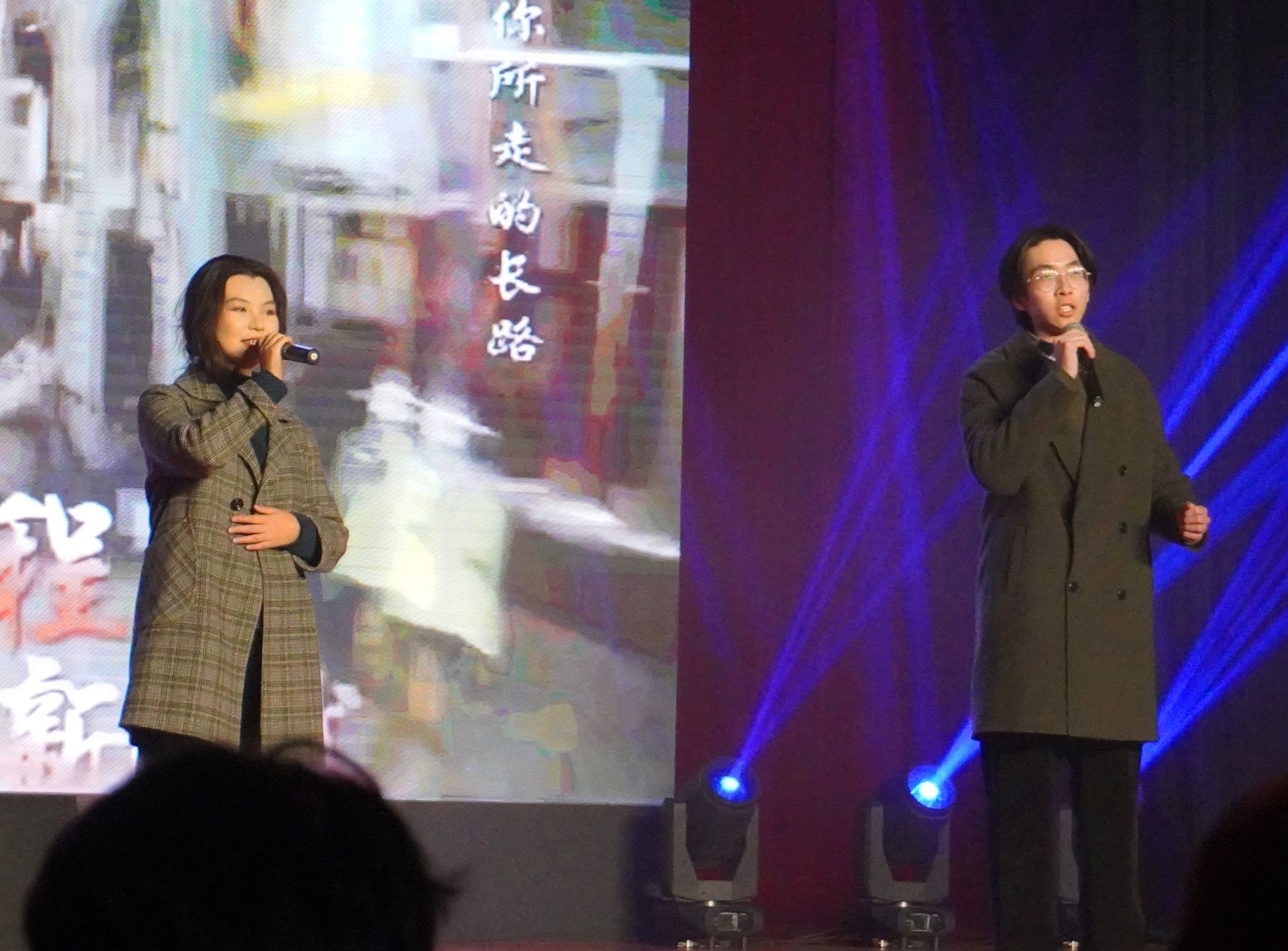 在本次晚会中,我院同学排演了三个节目,其中小品《玩转三国之先生请出山》融入了当代大学生学习、生活等方面的元素,因其贴近学生生活的剧情,赢得了现场观众的热烈掌声。朗诵《跨越百年的承诺》、歌曲《如愿》更是激发起了现场师生的爱国主义情感和对中国特色社会主义事业的自信自豪之情。其他学院同学们也带来了异彩纷呈的节目,让现场观众大饱眼福,除此之外,精心设计的互动游戏与抽奖环节将晚会气氛推向了高潮,师生们齐聚一堂共贺新年,欢声笑语不断,整个礼堂洋溢着浓厚的节日氛围。