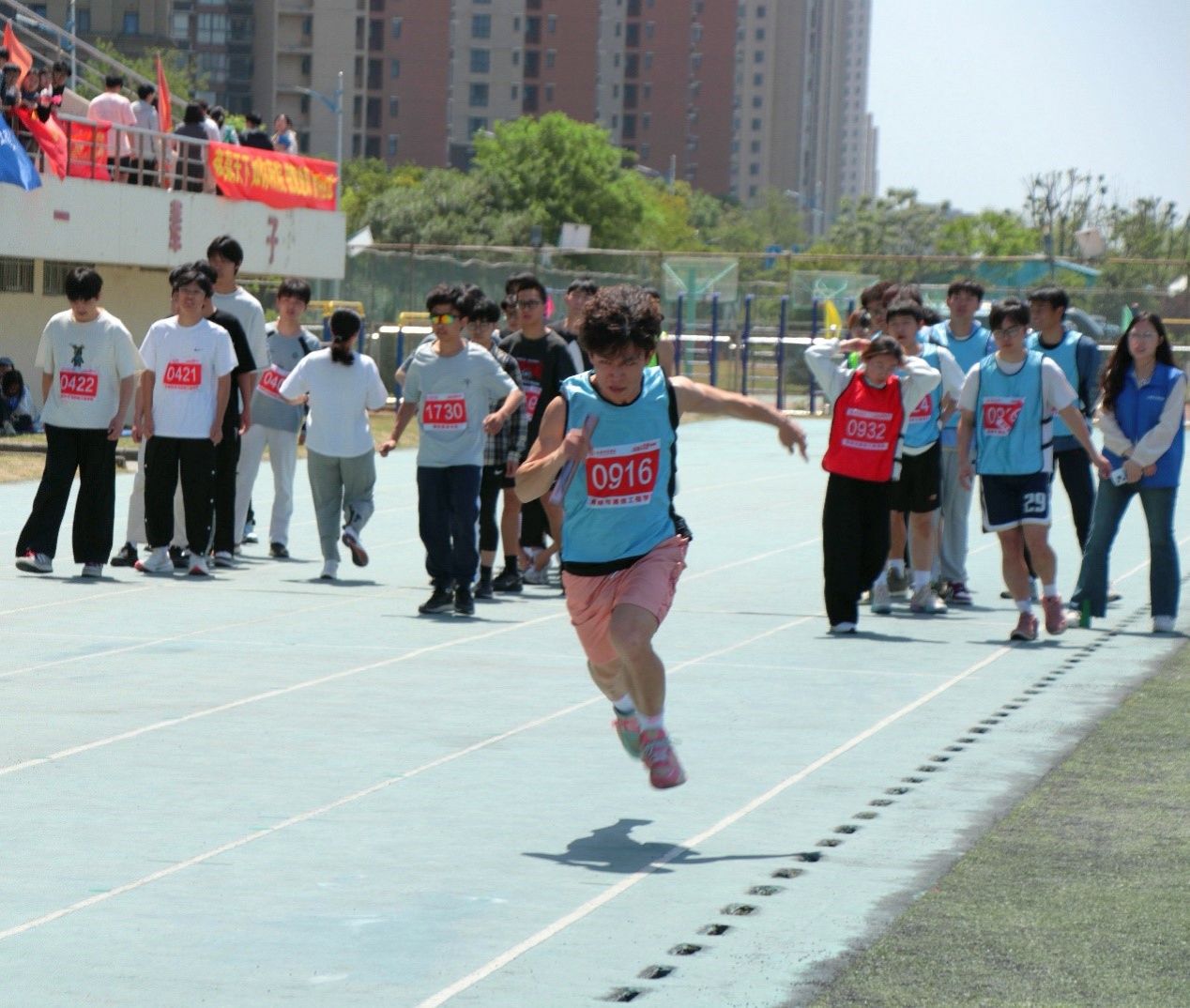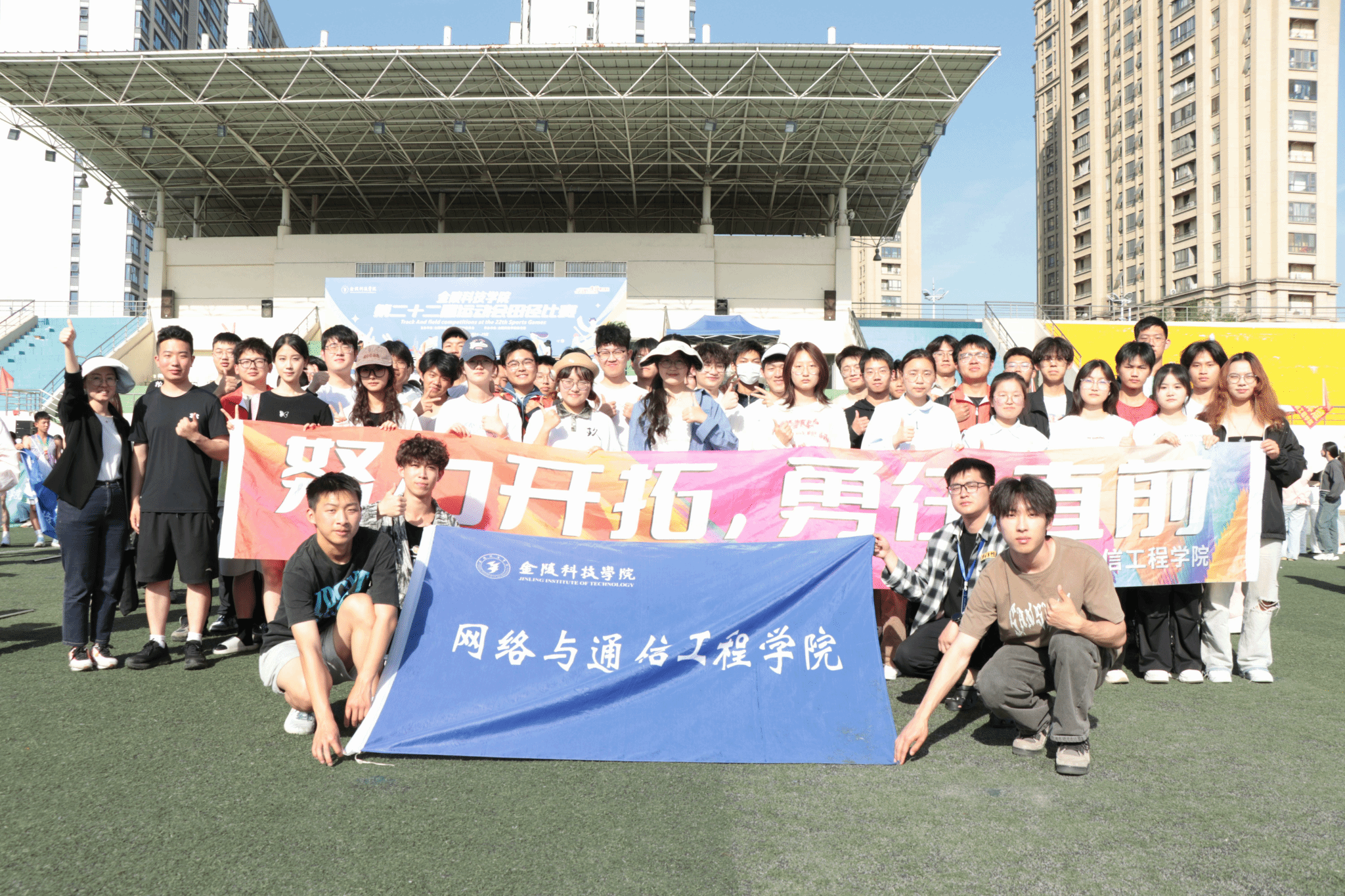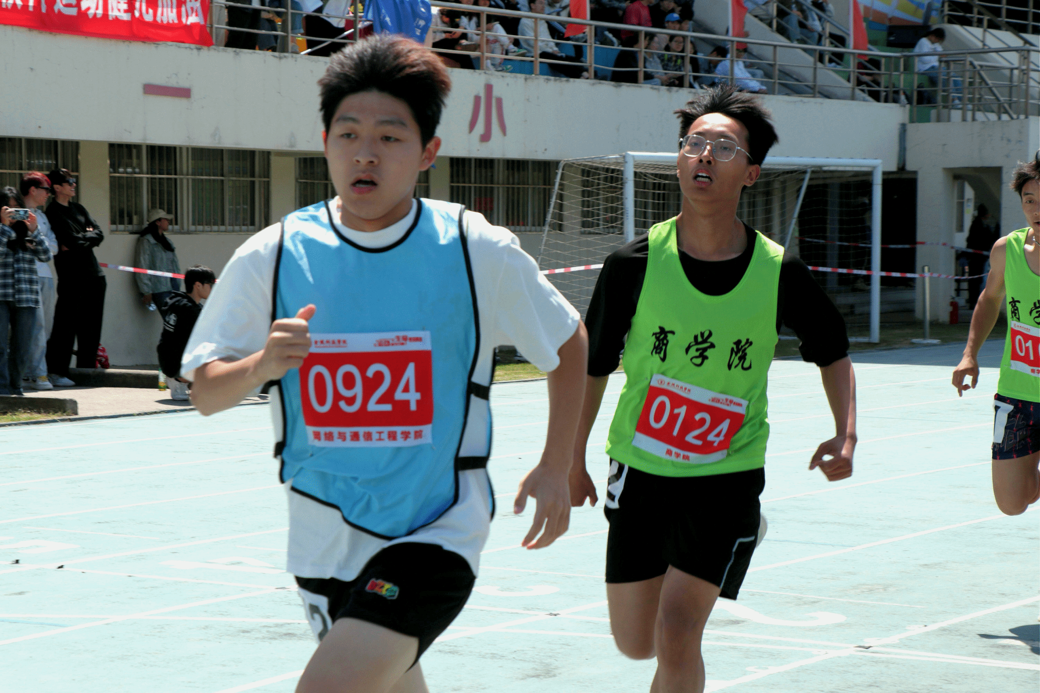 赛场内外,网通学子同心同行。我院健儿们在比赛中奋勇拼搏、配合默契;场边观众摇旗呐喊,“网通加油”的助威声此起彼伏;院学联组建的工作团队全程保障,为运动员提供赛事服务、补给、医疗支持;辅导员与啦啦队全程助阵,为网通健儿们加油助威。
