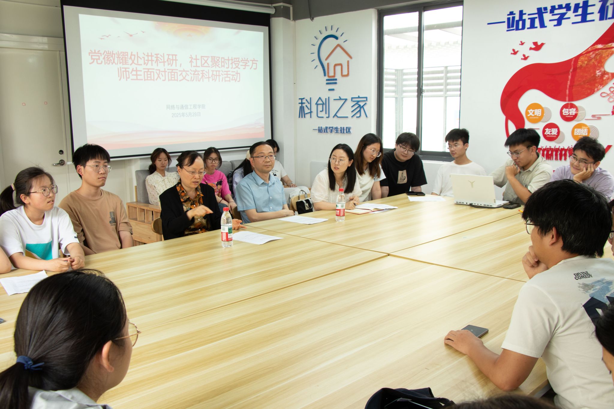 为充分发挥党员教师先锋模范作用,搭建师生交流互动平台,激发学生创新潜能,5月14日及5月28日下午,我院分别在南区08栋和北区02栋一站式社区举办了“党徽耀处讲科研,社区聚时授学方”科研交流系列活动。本次活动邀请了我院院长王池社教授、光电信息科学与工程系杨慧珍教授、通信工程系孔令军教授、李翔博士,通过师生面对面交流讨论的形式共话科研,吸引了大一大二学生积极参与。