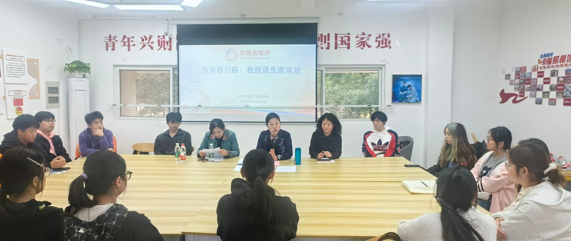 10月29日下午,主题为“为青春引路:教授说生涯规划”的“校园荟客厅”网通学院专题活动暨教授面对面活动在江宁校区南区08栋“一站式”学生社区举行。网通学院关工委成员原网通学院副院长陈美君、樊静和学生代表共聚一堂,进行学业规划和职业发展答疑。网通学院学工办主任、院关工委秘书郑灵敏参加。