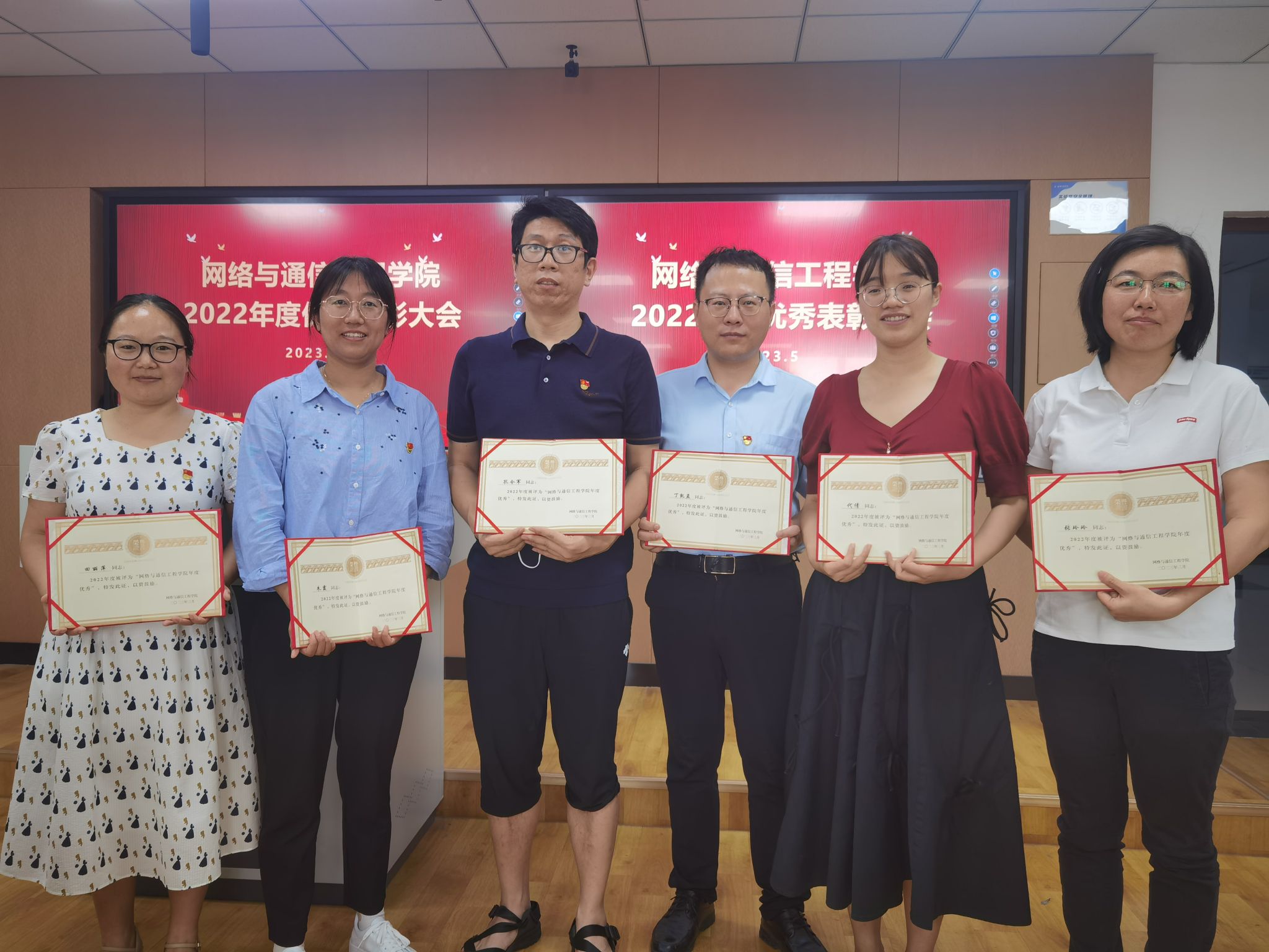 为加强团队建设示范引领作用,充分发挥教师典型模范带头作用, 5月31日下午,我院在科技4号楼604-1召开2022年度优秀表彰大会。院党委书记陈健、院长田锦、院党委副书记董宇、副院长王池社分别给2022年度获得记功、校优、师德优秀、院优荣誉的老师颁发了荣誉证书,表彰在教学、科研和管理服务岗位上作出重要贡献的教职工。