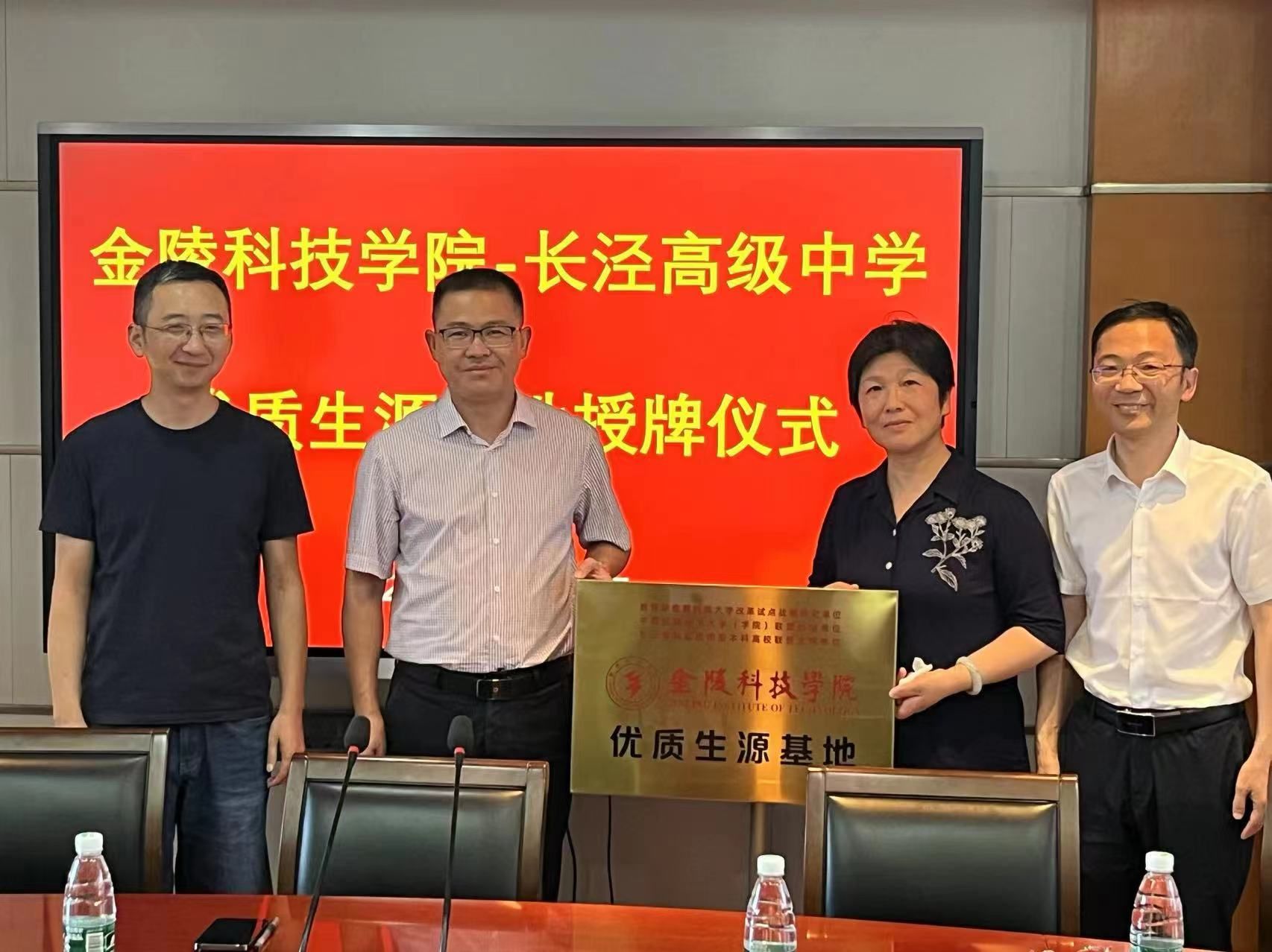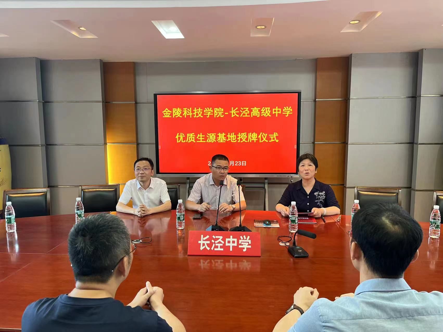 6月23日上午,太阳集团tyc539macau党委书记陈健、副院长王池社、通信工程系副主任金秀峰等人一行来到江苏省江阴长泾高级中学举办2023年招生咨询会,并代表太阳集团tyc539与长泾高级中学举行“优质生源基地”授牌仪式,长泾高级中学校长杨风楼、副校长周鎏云等出席仪式。