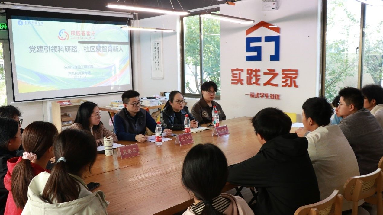 11月12日下午,我院在北区一站式社区举办了三场“校园荟客厅”科研交流活动,院党委书记沐阳、院长王池社、副院长孟超以及智慧交通、通信工程、光电信息系的系主任、教授、副教授和辅导员、学生代表参加了交流活动,通过三场科研交流及“挑战杯”申报项目观摩,搭建了党建与科创融合的育人平台。